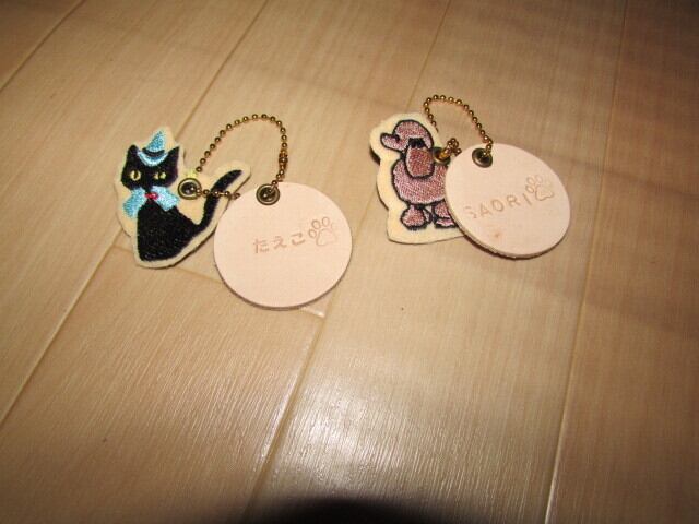 革ネームタグ付き刺繍キーホルダーです。